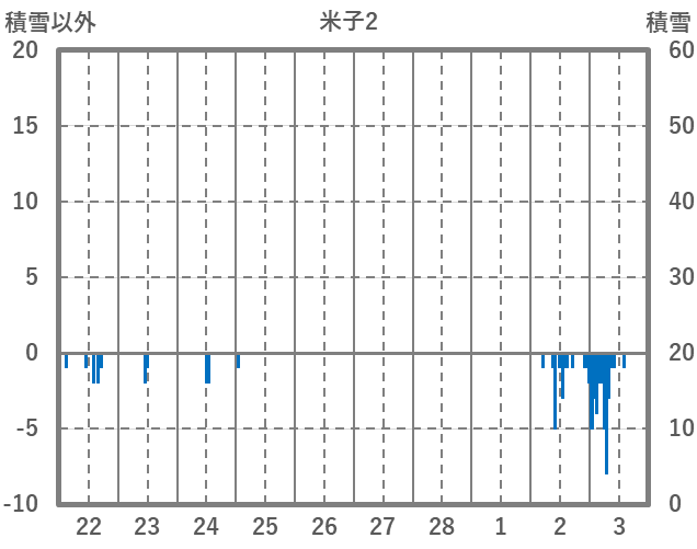| 日 | 時 | 気温 | 降水 | 風向/風速 | 日照 | 積雪 | 降雪 |