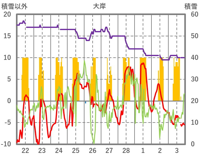 | 日 | 時 | 気温 | 降水 | 風向/風速 | 日照 | 積雪 | 降雪 |