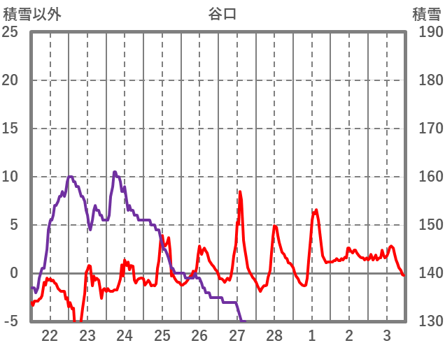 | 日 | 時 | 気温 | 降水 | 風向/風速 | 日照 | 積雪 | 降雪 |