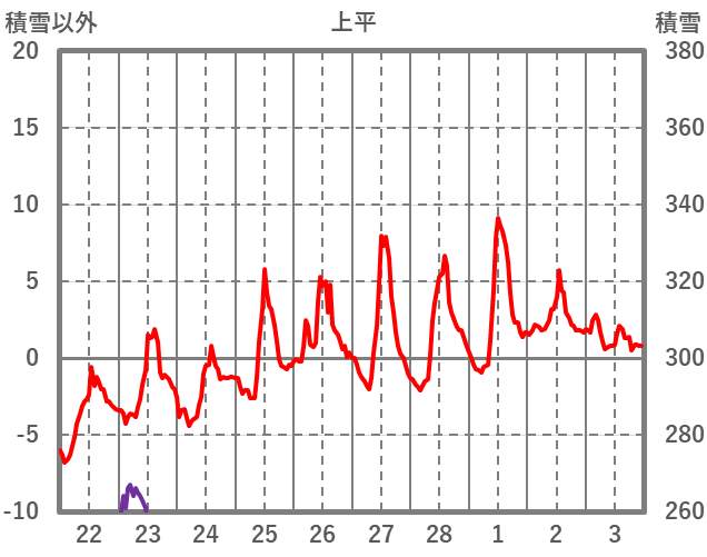| 日 | 時 | 気温 | 降水 | 風向/風速 | 日照 | 積雪 | 降雪 |