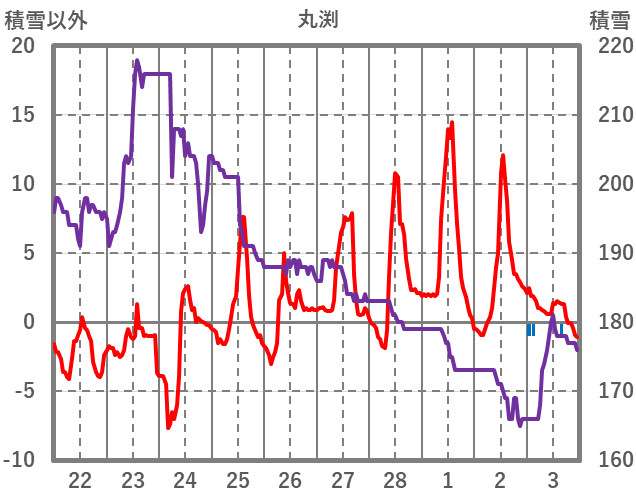 | 日 | 時 | 気温 | 降水 | 風向/風速 | 日照 | 積雪 | 降雪 |