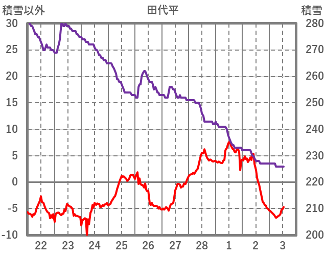 | 日 | 時 | 気温 | 降水 | 風向/風速 | 日照 | 積雪 | 降雪 |