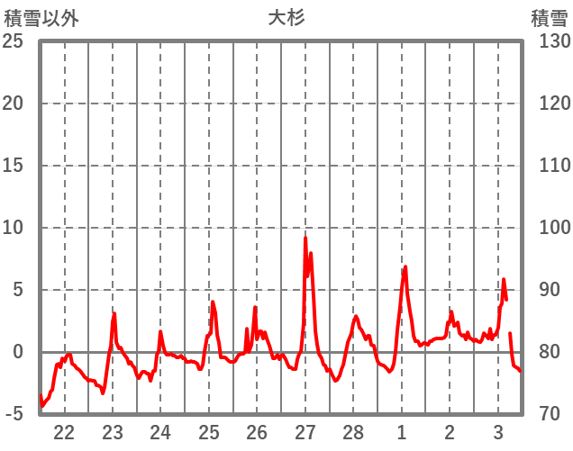 | 日 | 時 | 気温 | 降水 | 風向/風速 | 日照 | 積雪 | 降雪 |
