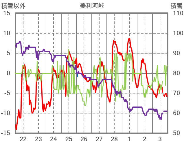 | 日 | 時 | 気温 | 降水 | 風向/風速 | 日照 | 積雪 | 降雪 |