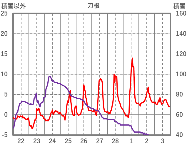 | 日 | 時 | 気温 | 降水 | 風向/風速 | 日照 | 積雪 | 降雪 |