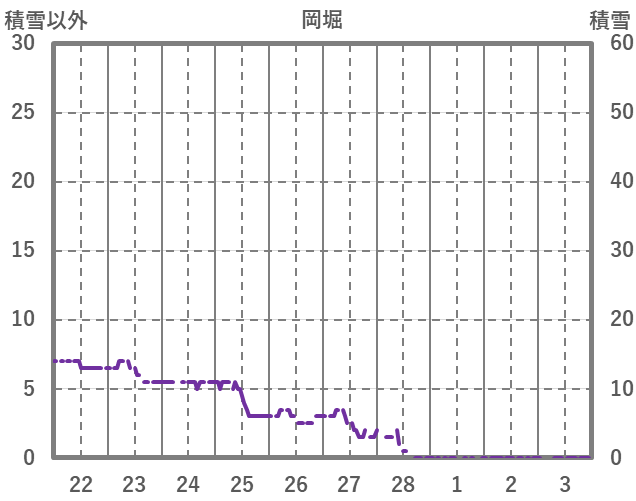 | 日 | 時 | 気温 | 降水 | 風向/風速 | 日照 | 積雪 | 降雪 |