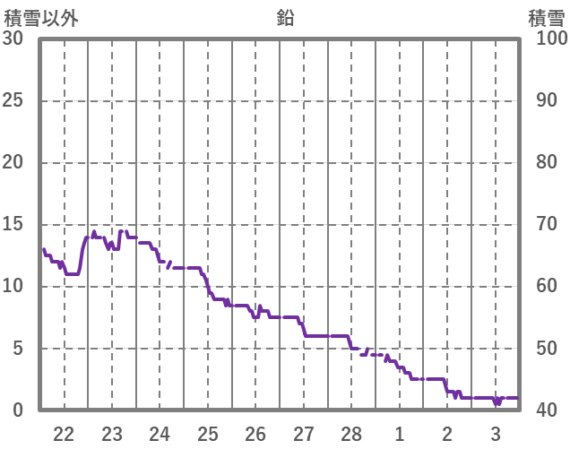 | 日 | 時 | 気温 | 降水 | 風向/風速 | 日照 | 積雪 | 降雪 |
