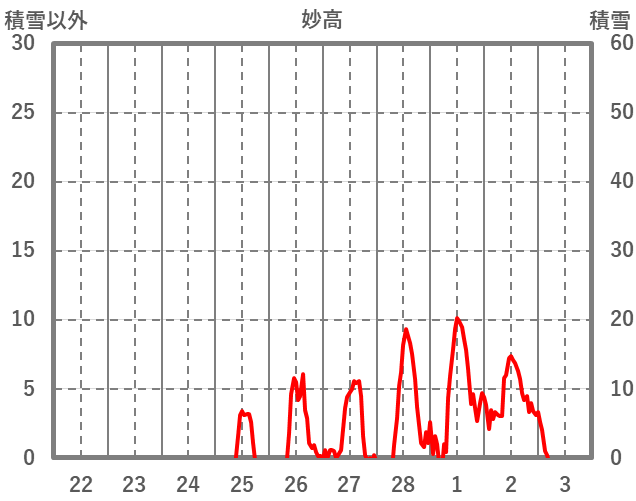 | 日 | 時 | 気温 | 降水 | 風向/風速 | 日照 | 積雪 | 降雪 |