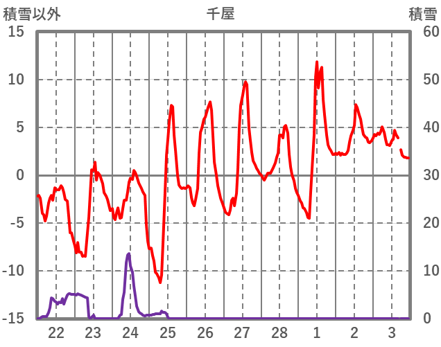 | 日 | 時 | 気温 | 降水 | 風向/風速 | 日照 | 積雪 | 降雪 |