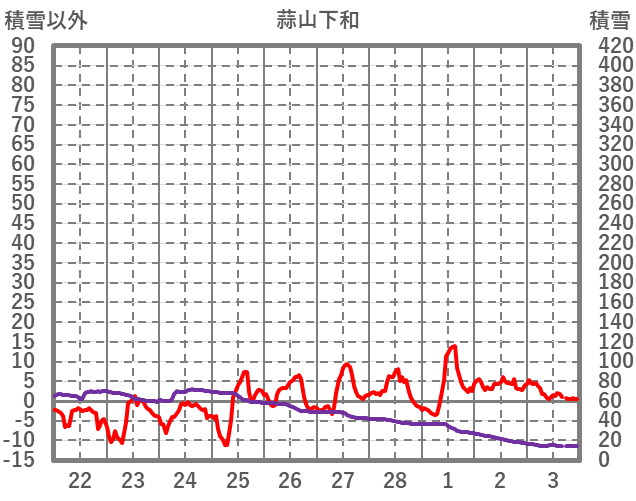 | 日 | 時 | 気温 | 降水 | 風向/風速 | 日照 | 積雪 | 降雪 |