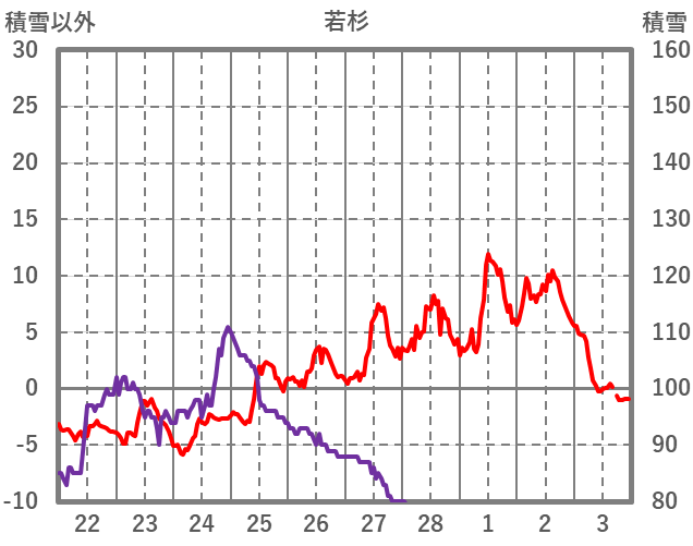 | 日 | 時 | 気温 | 降水 | 風向/風速 | 日照 | 積雪 | 降雪 |