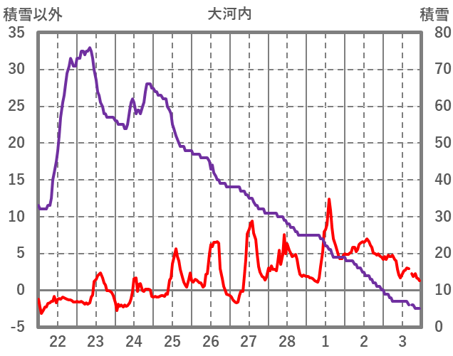 | 日 | 時 | 気温 | 降水 | 風向/風速 | 日照 | 積雪 | 降雪 |