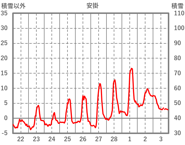 | 日 | 時 | 気温 | 降水 | 風向/風速 | 日照 | 積雪 | 降雪 |