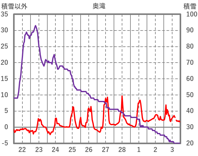 | 日 | 時 | 気温 | 降水 | 風向/風速 | 日照 | 積雪 | 降雪 |