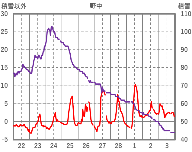 | 日 | 時 | 気温 | 降水 | 風向/風速 | 日照 | 積雪 | 降雪 |