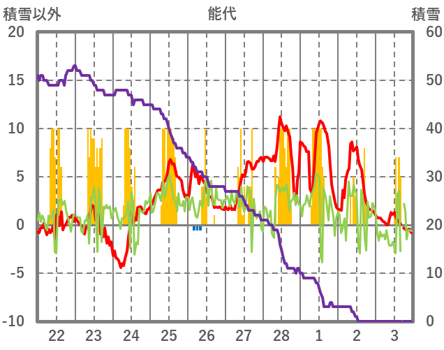 | 日 | 時 | 気温 | 降水 | 風向/風速 | 日照 | 積雪 | 降雪 |