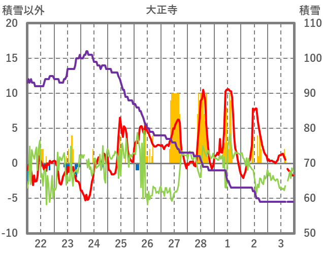 | 日 | 時 | 気温 | 降水 | 風向/風速 | 日照 | 積雪 | 降雪 |