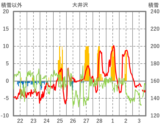 | 日 | 時 | 気温 | 降水 | 風向/風速 | 日照 | 積雪 | 降雪 |