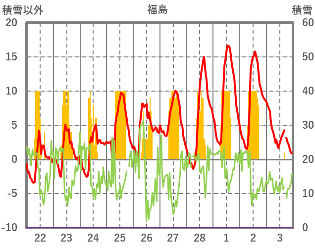 | 日 | 時 | 気温 | 降水 | 風向/風速 | 日照 | 積雪 | 降雪 |