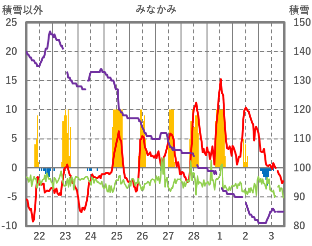 | 日 | 時 | 気温 | 降水 | 風向/風速 | 日照 | 積雪 | 降雪 |