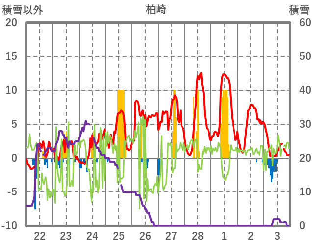 | 日 | 時 | 気温 | 降水 | 風向/風速 | 日照 | 積雪 | 降雪 |
