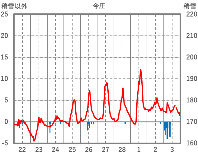 | 日 | 時 | 気温 | 降水 | 風向/風速 | 日照 | 積雪 | 降雪 |