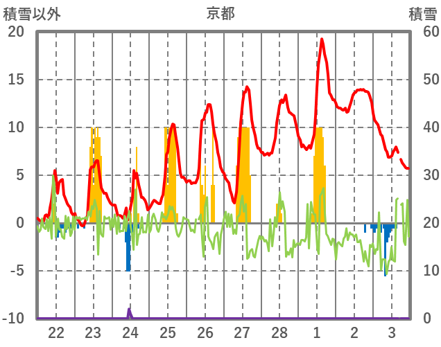 | 日 | 時 | 気温 | 降水 | 風向/風速 | 日照 | 積雪 | 降雪 |