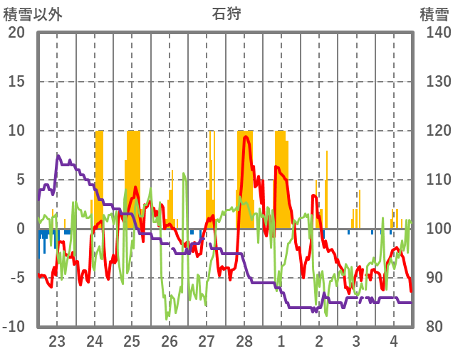 | 日 | 時 | 気温 | 降水 | 風向/風速 | 日照 | 積雪 | 降雪 |