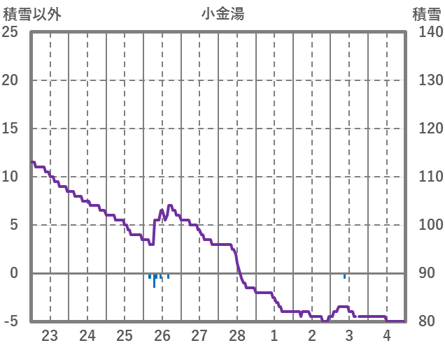 | 日 | 時 | 気温 | 降水 | 風向/風速 | 日照 | 積雪 | 降雪 |