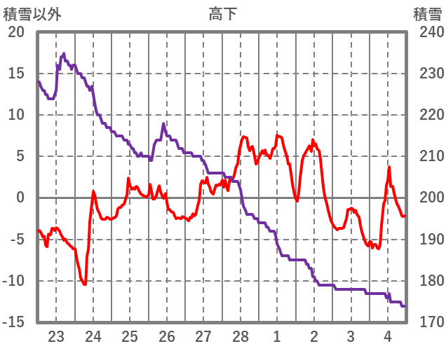 | 日 | 時 | 気温 | 降水 | 風向/風速 | 日照 | 積雪 | 降雪 |