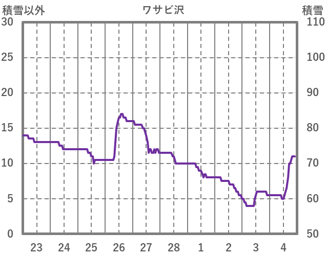 | 日 | 時 | 気温 | 降水 | 風向/風速 | 日照 | 積雪 | 降雪 |