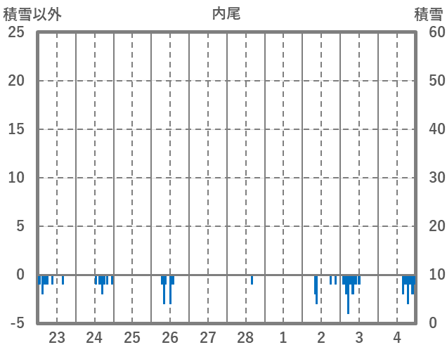 | 日 | 時 | 気温 | 降水 | 風向/風速 | 日照 | 積雪 | 降雪 |