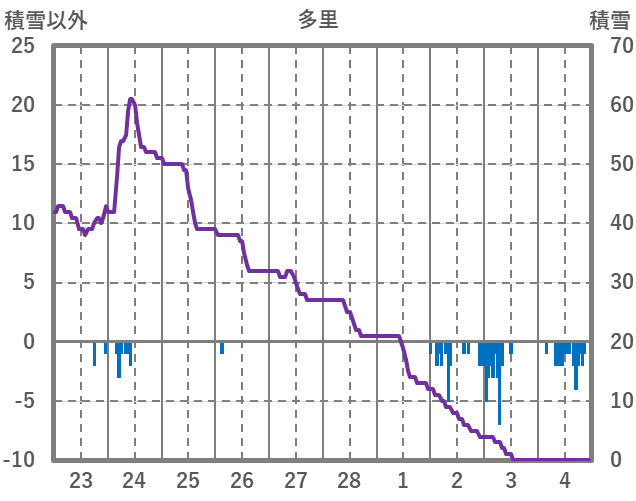 | 日 | 時 | 気温 | 降水 | 風向/風速 | 日照 | 積雪 | 降雪 |