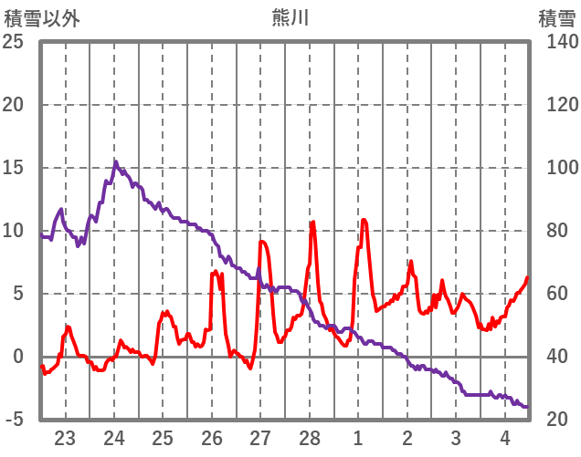 | 日 | 時 | 気温 | 降水 | 風向/風速 | 日照 | 積雪 | 降雪 |