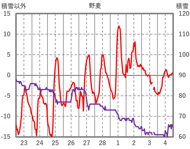 | 日 | 時 | 気温 | 降水 | 風向/風速 | 日照 | 積雪 | 降雪 |