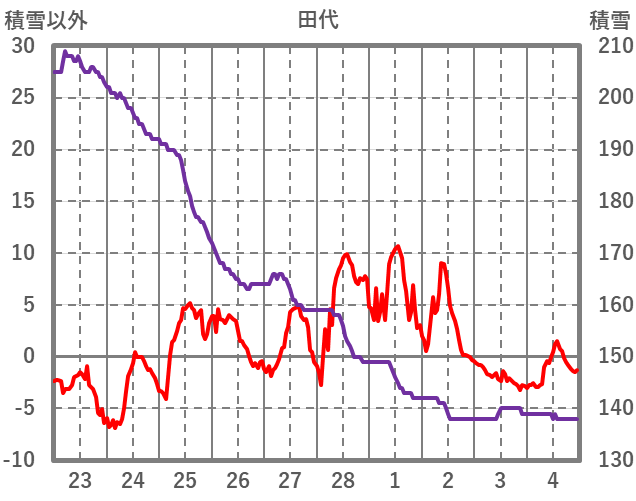 | 日 | 時 | 気温 | 降水 | 風向/風速 | 日照 | 積雪 | 降雪 |