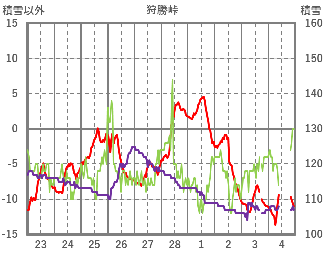 | 日 | 時 | 気温 | 降水 | 風向/風速 | 日照 | 積雪 | 降雪 |