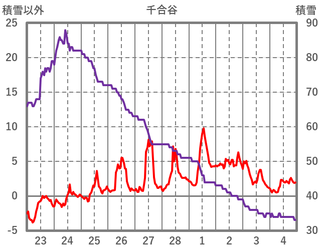 | 日 | 時 | 気温 | 降水 | 風向/風速 | 日照 | 積雪 | 降雪 |