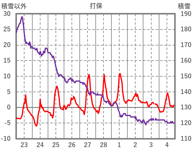 | 日 | 時 | 気温 | 降水 | 風向/風速 | 日照 | 積雪 | 降雪 |