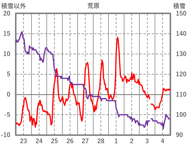 | 日 | 時 | 気温 | 降水 | 風向/風速 | 日照 | 積雪 | 降雪 |
