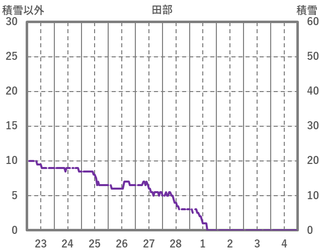 | 日 | 時 | 気温 | 降水 | 風向/風速 | 日照 | 積雪 | 降雪 |