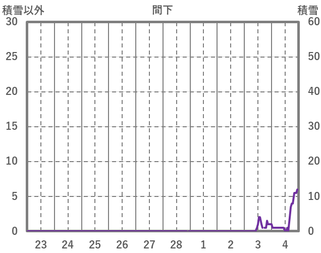 | 日 | 時 | 気温 | 降水 | 風向/風速 | 日照 | 積雪 | 降雪 |