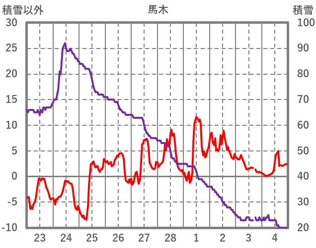 | 日 | 時 | 気温 | 降水 | 風向/風速 | 日照 | 積雪 | 降雪 |