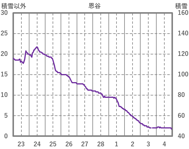 | 日 | 時 | 気温 | 降水 | 風向/風速 | 日照 | 積雪 | 降雪 |