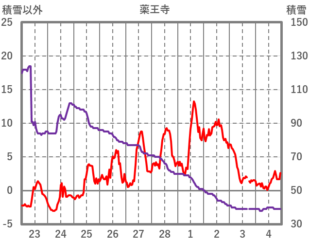| 日 | 時 | 気温 | 降水 | 風向/風速 | 日照 | 積雪 | 降雪 |