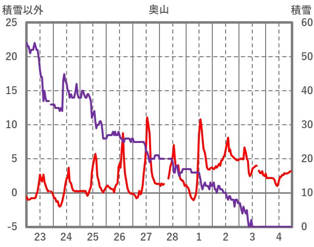| 日 | 時 | 気温 | 降水 | 風向/風速 | 日照 | 積雪 | 降雪 |