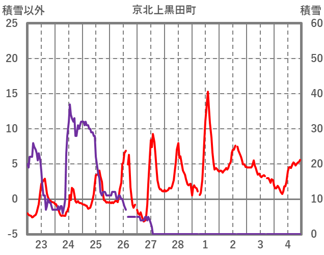 | 日 | 時 | 気温 | 降水 | 風向/風速 | 日照 | 積雪 | 降雪 |