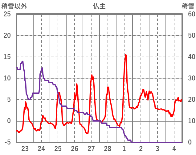 | 日 | 時 | 気温 | 降水 | 風向/風速 | 日照 | 積雪 | 降雪 |