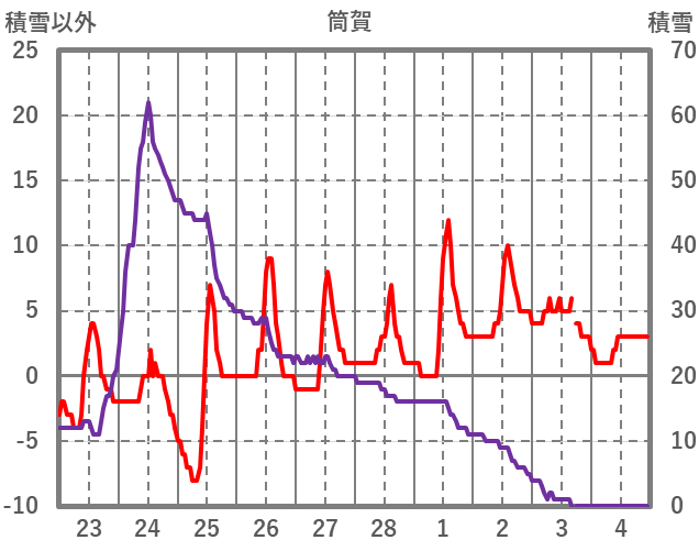 | 日 | 時 | 気温 | 降水 | 風向/風速 | 日照 | 積雪 | 降雪 |
