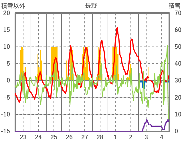 | 日 | 時 | 気温 | 降水 | 風向/風速 | 日照 | 積雪 | 降雪 |